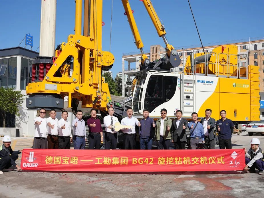 11月18日,工勘集團(tuán)在桂廟新村城市更新單元項(xiàng)目舉行寶峨BG42旋挖鉆機(jī)接機(jī)儀式。工勘建設(shè)集團(tuán)董事長(zhǎng)林浩平、副總裁吳文炎;工勘基礎(chǔ)公司董事長(zhǎng)黃曉凱,總經(jīng)理莫森升,副總經(jīng)理孔德健、唐漢生;工勘巖土集團(tuán)副總經(jīng)理李波、總經(jīng)理助理林一;寶峨中國(guó)區(qū)銷(xiāo)售總監(jiān)劉捷、副總經(jīng)理王柳松以及桂廟新村城市更新單元項(xiàng)目相關(guān)負(fù)責(zé)人參加了活動(dòng)。