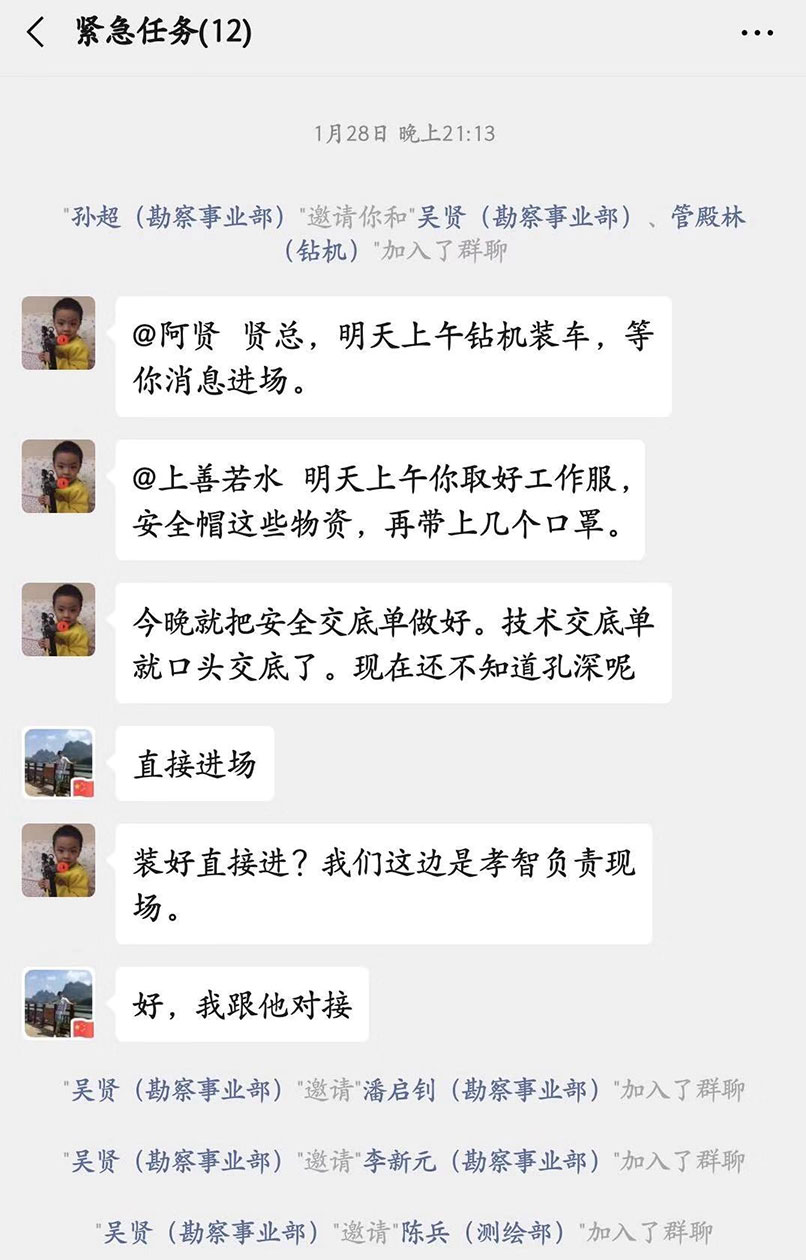 “緊急任務(wù)”工作群里多數(shù)都是黨員,鉆探機(jī)組黃凱彬表示:“我是共產(chǎn)黨員又是退伍軍人,疫情面前,我肯定要先上?!币幻h員就是一面旗幟,在這個(gè)特殊的春節(jié)里,在抗擊新型冠狀病毒感染肺炎疫情的前沿陣地上,“我是黨員,我先上”成為他與廣大黨員面對(duì)疫情最響亮的回答。