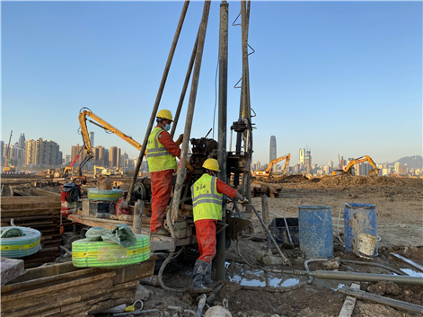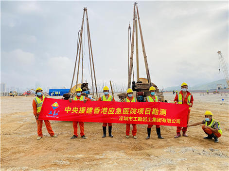在中建科工的統(tǒng)籌領(lǐng)導下,工勘集團火速馳援中央援港應急醫(yī)院建設,負責項目勘察、控制測量、地形圖測繪、地下管線探測、航測三維建模、軟基處理設計及基坑支護設計等工作。