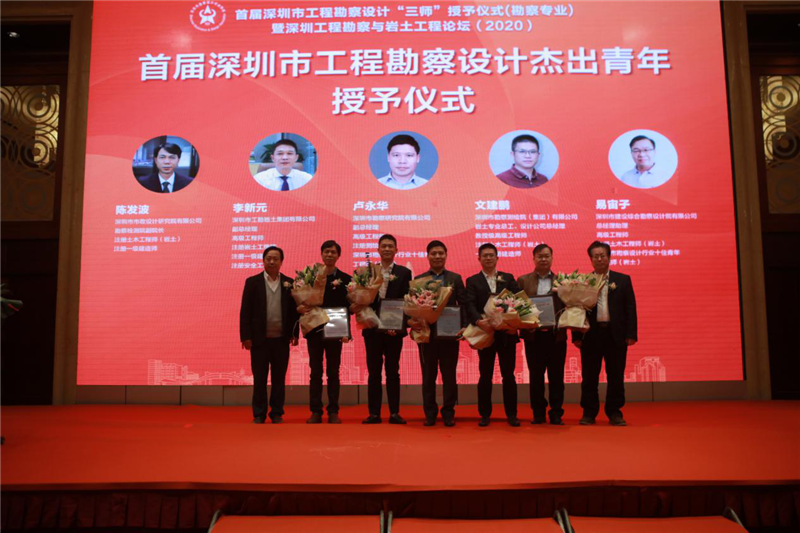 工勘巖土集團(tuán)副總經(jīng)理李新元(左三)獲評(píng)為“首屆深圳市工程勘察設(shè)計(jì)杰出青年”