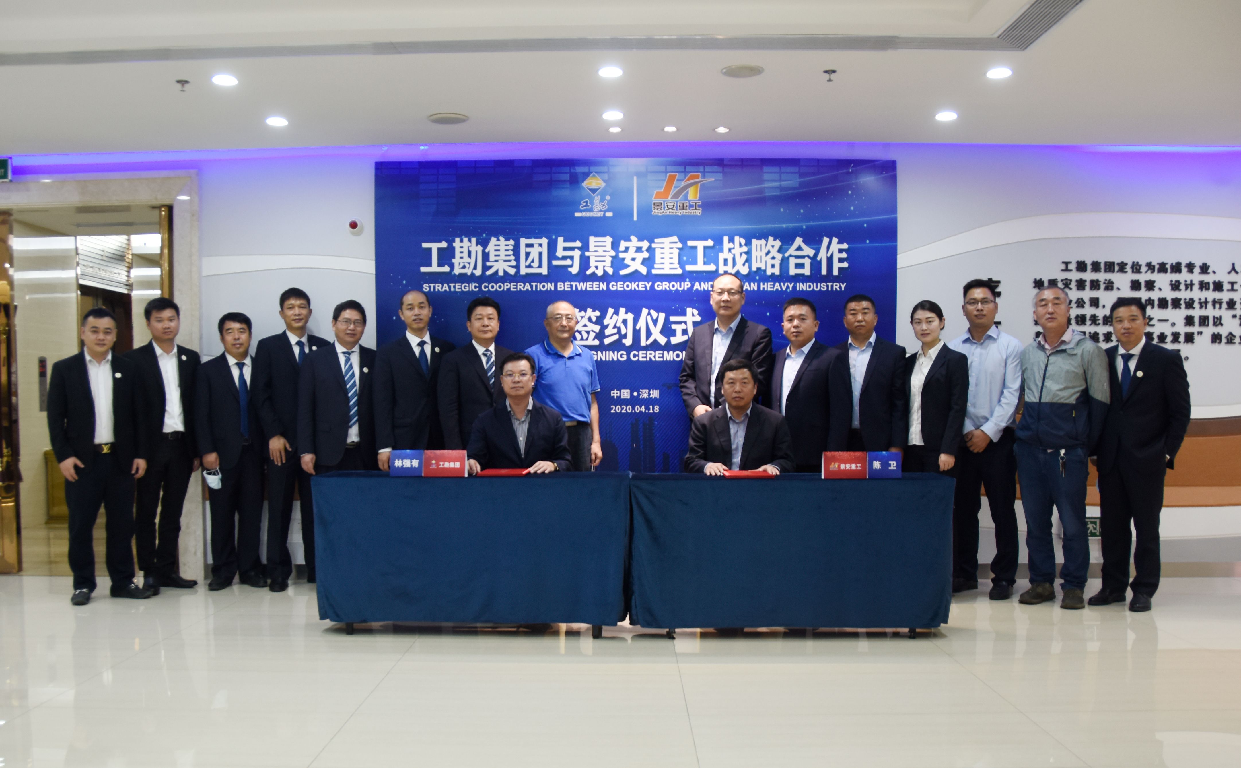 2020年4月18日上午,工勘集團與徐州景安重工機械制造有限公司(以下簡稱景安重工)戰(zhàn)略合作框架協(xié)議簽約儀式在工勘集團總部舉行。景安重工董事長陳衛(wèi)、總經(jīng)理魏垂勇、副總經(jīng)理李景峰,工勘集團董事長林強有,工勘巖土集團副董事長雷斌、總經(jīng)理李紅波、總工程師王賢能、副總經(jīng)理付文光、李新元等雙方領導及相關部門負責人出席了簽約儀式,深圳市土木建筑學會巖土工程專業(yè)委員會主任劉小敏等嘉賓受邀見證了簽約。