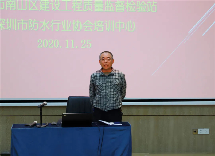 2020年11月25日,按照深圳市住建局的統(tǒng)一部署,為加大《深圳市建設(shè)工程防水技術(shù)標(biāo)準(zhǔn)》(SJG19-2019)的宣傳力度,提高南山區(qū)建筑工程質(zhì)量,由深圳市南山區(qū)建設(shè)工程質(zhì)量監(jiān)督檢驗(yàn)站和深圳市防水行業(yè)協(xié)會培訓(xùn)中心組織召開的《深圳市建設(shè)工程防水技術(shù)標(biāo)準(zhǔn)》(SJG19-2019)宣貫會于深圳南山區(qū)工勘集團(tuán)11樓會議室召開。深圳市南山區(qū)建設(shè)工程質(zhì)量監(jiān)督檢驗(yàn)站領(lǐng)導(dǎo)、土建監(jiān)督員、區(qū)在監(jiān)各項(xiàng)目建設(shè)、設(shè)計、施工、監(jiān)理單位的技術(shù)骨干等40余人參會。